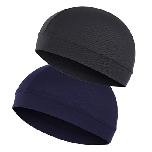 Anseom 2-pack cykling dödskallemössa fukttransporterande dödskallemössa löparmössa andas under hjälm hattar mjuk sportmössa för män kvinnor löpning vandring motorcykel (svart + marinblå), Svart+