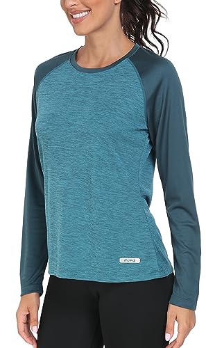 AjezMax Löpartröja dam långärmad sporttoppar crew neck andas utomhus långärmad tröja fitness vandring vandring funktionell skjorta, Havsblått, M