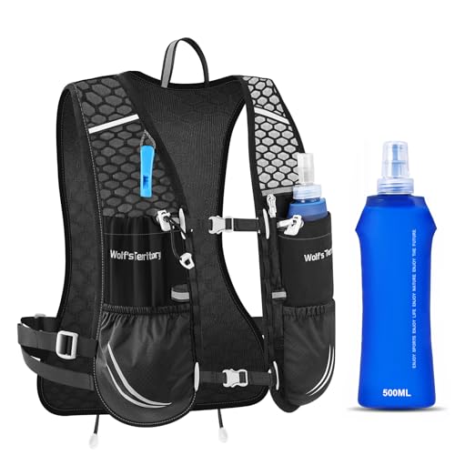 HMAKGG Löparväst för Kvinnor & Män – 470 ml Mjuk Vattenflaska, Justerbar Löparryggsäck, Andningsbar Vätskeryggsäck med Telefonficka, lätt 156g, för Löpning, Maraton, Trail, Cykling & Vandring