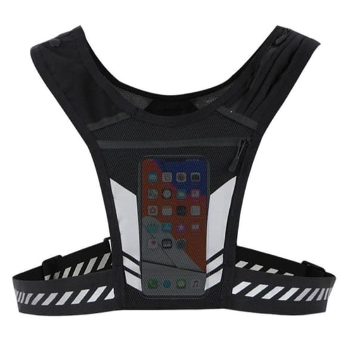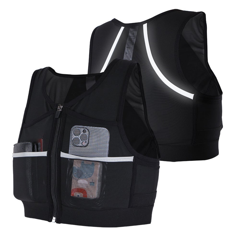 Löparväst med reflexdetaljer, justerbar passform och förvaringsfickor