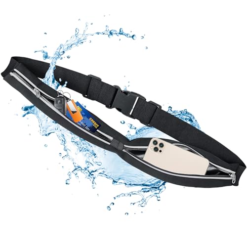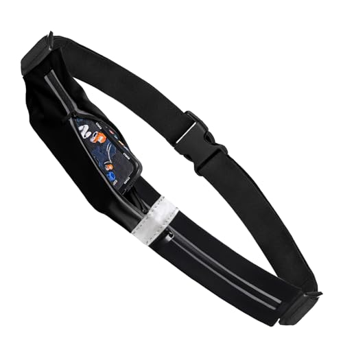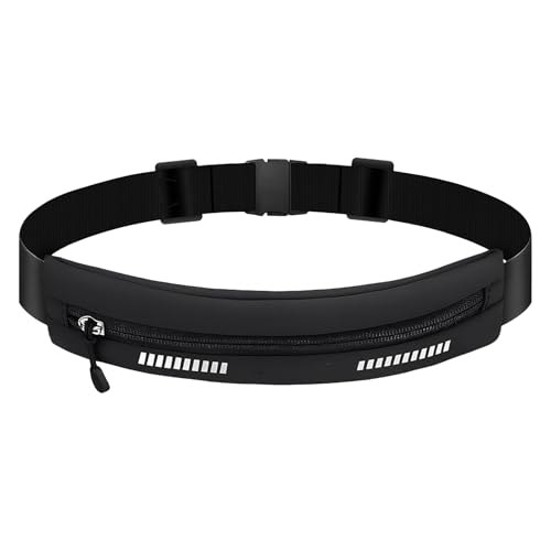 WATERFLY Löpbälte för mobiltelefon väska jogging: Running midjeväska platt midjeväska kvinnor män jogging bälte löpväska sportbälte midjeväska för löpning sport fitness resor, svart, S, pengabälte