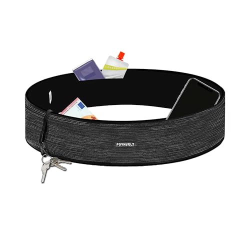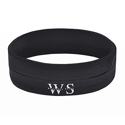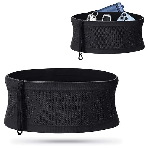 Multifunktionell andningsbar dold stickad höftväska, unisex löpning midjebälte löpbälte för mobiltelefon, magväska jogging bältesväska med nyckelklämma för telefoner, nycklar, kort, svart, S,