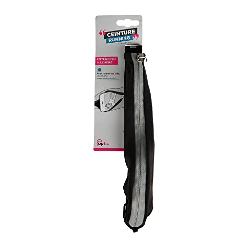 UPFIT - Löpbälte - Lätt och justerbart - personlig affärsplacering under sport - platt form för att förhindra att bältet rör sig - längd: 45 cm - Färg: Svart och grå