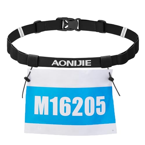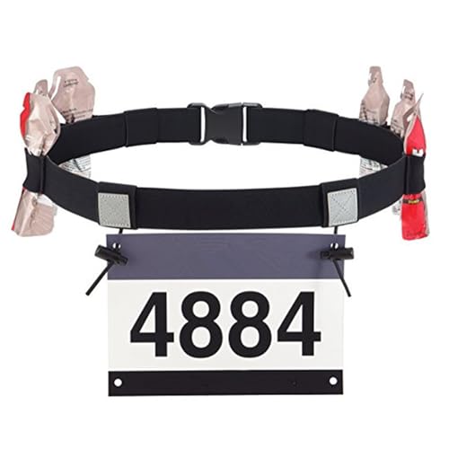 TRIWONDER Löpbälte racernummer bälte justerbart triathlon racerbälte med 6 elastiska gelöglor maraton haklappshållare (svart)