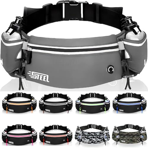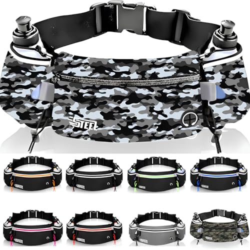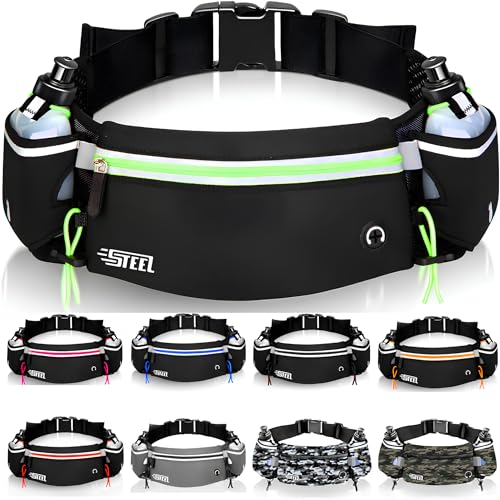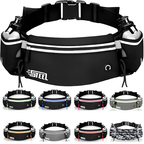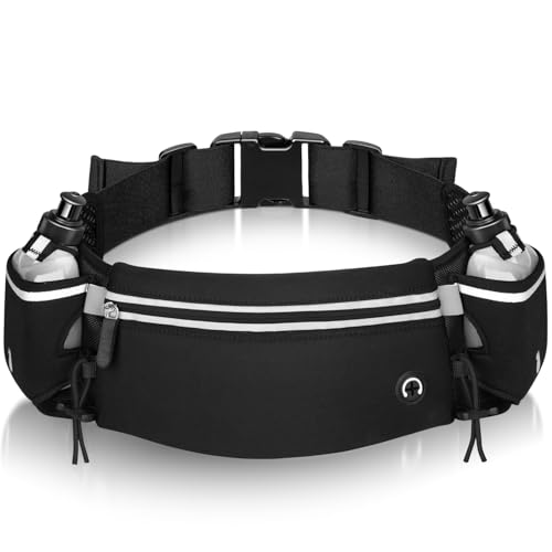 Labeol Race vattenflaska vätskebälte med hållare för vattenflaska, justerbar reflekterande midjeväska med flaskhållare, kompatibel med telefon löpbälte i, Svart, Taille unique