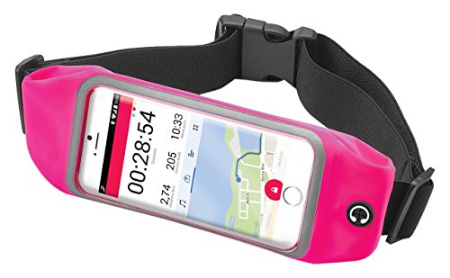 Celly RunBeltView Elastic Löpbälte med öronproppar och ficka Transparent & Touch för Smartphone Upp till 4,7", Rosa