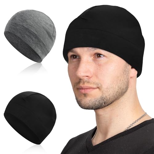 AOOSA 2 st mössa för män och kvinnor, multifunktionell löparmössa, andningsbar bomull löpning skalle keps, låg hjälmkeps, underkeps för cykling motorcykel, Svart + mörkgrå, one size