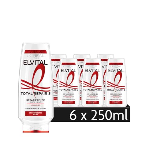 L'Oréal Paris Elvital reparationsbalsam mot 5 problem skadat hår, med Calendula extrakt, Total Repair 5, 6 x 250 ml