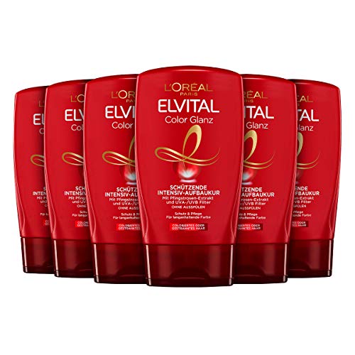 L'Oréal Paris Elvital Färgskydd hårbehandling utan sköljning, för färgat eller slingat hår, utan parabener, färgglans intensiv uppbyggnad, 6 x 125 ml
