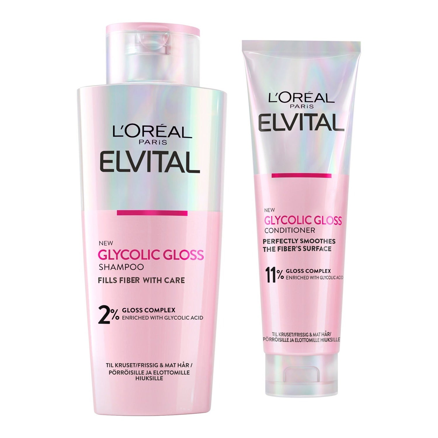 L'Oréal Paris Elvive Glycolic Gloss Upplysande schampo med glykolsyra 200 ml + sköljfritt serum för poröst och blekt hår Smaklös och långvarig glans 150 ml - 2 flaskor