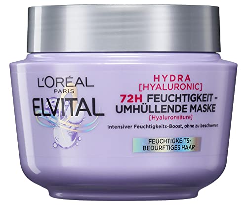 L'Oréal Paris Elvital fuktgivande hårmask för glänsande hår, intensivbehandling med hyaluron för en fuktboost, Hydra Hyaluronic, 300 ml