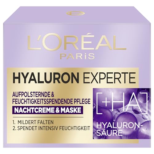 L'Oréal Paris Hyaluron Expert nattkräm & ansiktsmask med två typer av hyaluronsyra för vadderad och återfuktad hud, 50 ml
