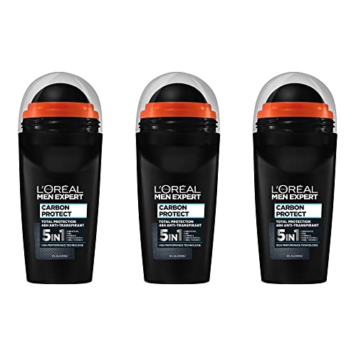 L'Oréal Men Expert 5-i-1 deodorant för män mot lukt, fukt, bakterier och vita rester för upp till 48 timmars friskhet, kolskydd, 3 x 50 ml