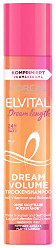 L'Oréal Paris Elvital torrschampo för platt hår, 24 timmar doft, utan synliga rester, mot feta metoder, med vitaminer och ricinolja, Dream Volume Dry schampo, 1 x 200 ml