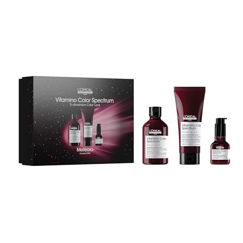 L'Oréal Professionnel vårdrio av schampo, hårmask och leave-in-serum, meteora presentset, med ferula- och citronsyra för färgat hår, seriexpert, Vitamino Color Spectrum