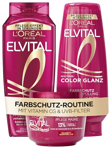 L'Oréal Paris Hårvårdsset: Färgskydd Schampo 300 ml, Balsam 250 ml & Närande Mask 300 ml, För Färgat, Tonat eller Slingat Hår - Skyddar Skönheten i Hårfärgen, Bevarar Färgintensitet & Ljusstyrka