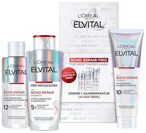 L'Oréal Paris presentset, preschampo, schampo och balsam, återställer trasigt hårrygg, Elvital, Bond Repair, 3 st.