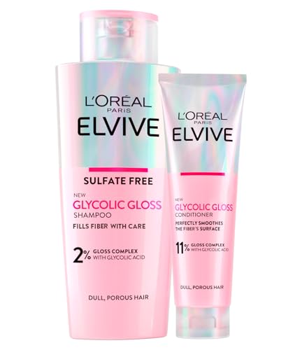 L'Oréal Paris Elvive Glycolic Gloss Upplysande schampo med glykolsyra 200 ml + balsam för poröst och tråkigt hår och glans med långvarig glans och kvällseffekt 150 ml – 2 flaskor