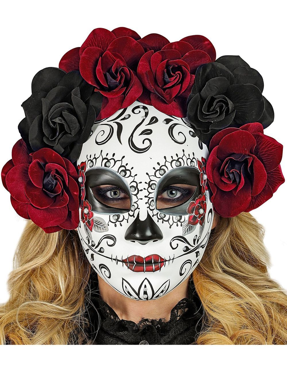 Dia de los Muertos - Mask med Svarta och Bourgogne Rosor