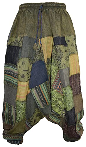 Gheri Harem byxor för män med tryck lappverk stentvättad yoga bohem lösa tryckta byxor, Grön lapp, L-XL