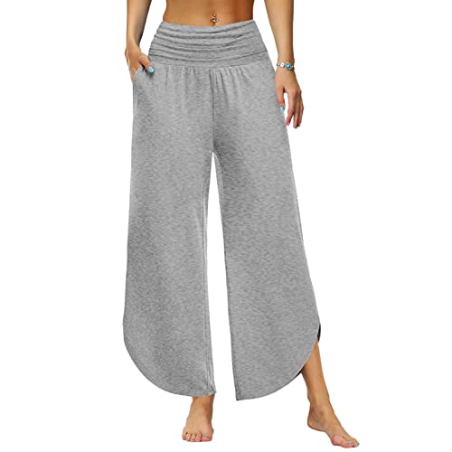 FACDIBY Joggingbyxor med breda ben för damer, elastiska, med hög midja och dragsko, lösa byxor med fickor, S