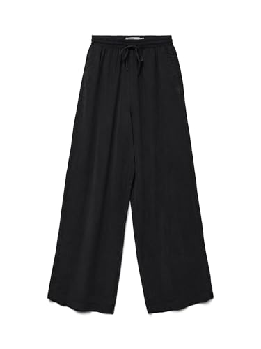 VERO MODA Dam casual linne tygbyxor lediga slip-on-byxor lösa ankelbyxor, Silverfoder, L