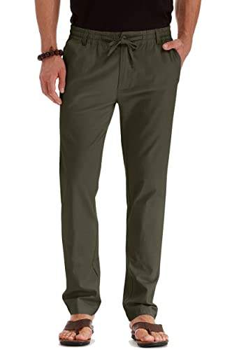 Sailwind herr dragsko sommar strand lösa byxor linnebyxor casual med elastiskt midjeband, B12 olivgrön, 46 SE