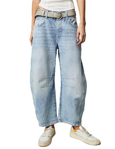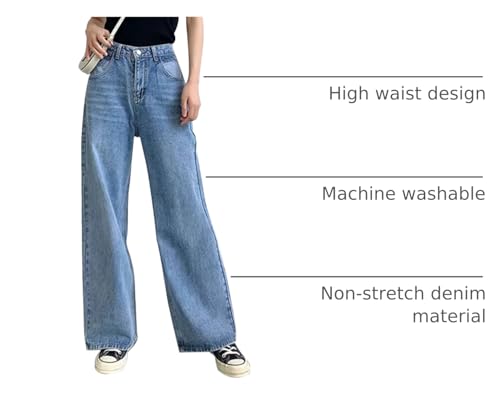 HDLTE Dam vida ben jeans hög midja säckiga jeans lösa pojkvän jeans denim byxor Y2K, BLÅ, S