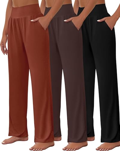 Neer 3 st dam vida ben yogabyxor bekväma lösa träningsbyxor hög midja fritid atletisk byxa träning joggingbyxor, Svart, mörkbrun, pumpa, XXL
