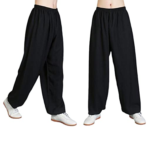 XRDSHY Herr överdimensionerade Tai Chi träningsbyxor bomull linne lösa kampsport träningsbyxor dam Zen-meditationsbyxor Taekwondo Sanda Bloomers, svart-XXXL
