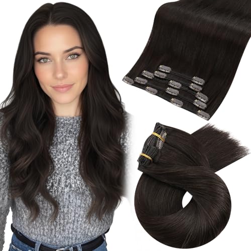 Moresoo Clip in Äkta Hår Mörkaste Bruna Med Mellanbrun Löshår Äkta Hår Clips Osynlig Remy Clip in Hair Extensions Äkta Hår Balayage 40 cm 5st 80g 2/6/2