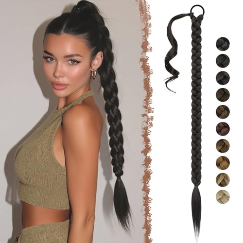 FESHFEN Lång Flätad Hästsvans Förlängning med Hårsnodd 65 cm Long Braid Ponytail Extension Hår Hästsvans Förlängningar Syntetiskt Hårstycke Löshår för Kvinnor, Svart brun