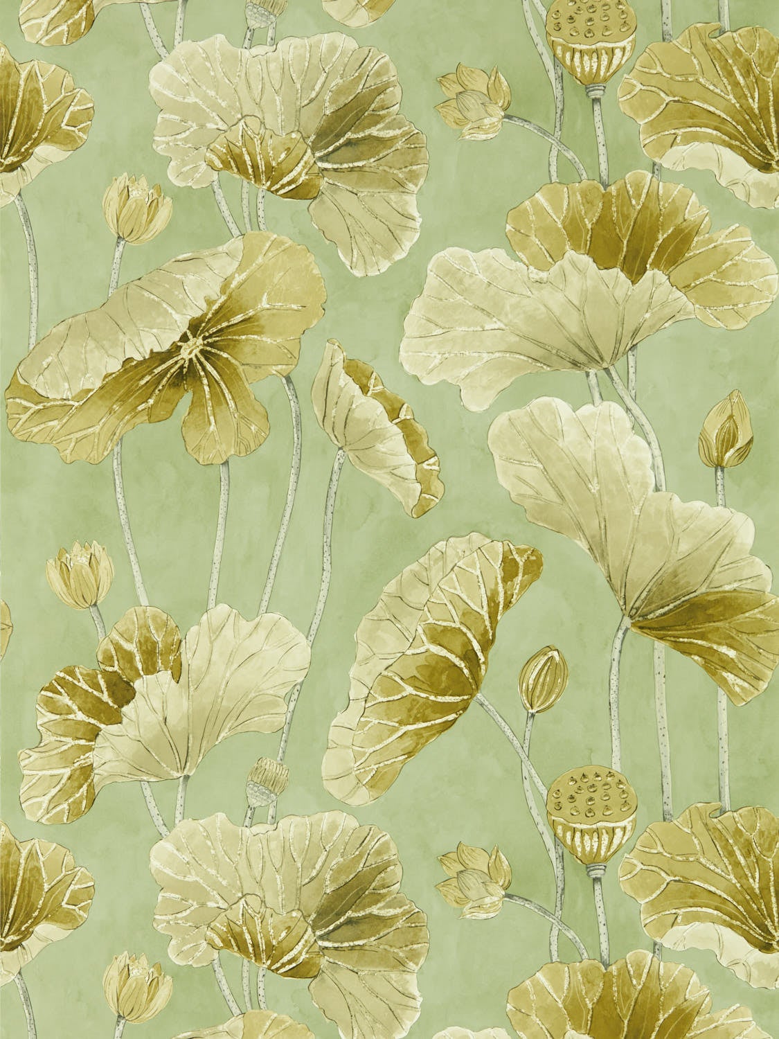 Lotus Leaf Oriental Green Water Garden Wallpapers