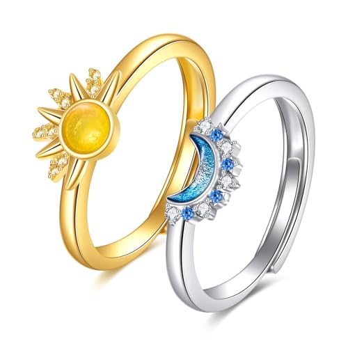 Flyow Just Breathe Spinner Ring för Ångest 925 sterlingsilver roterbar månsten lotusring lindrar ångest stressring lotus yoga smycken presenter till kvinnor 54 (17,3)