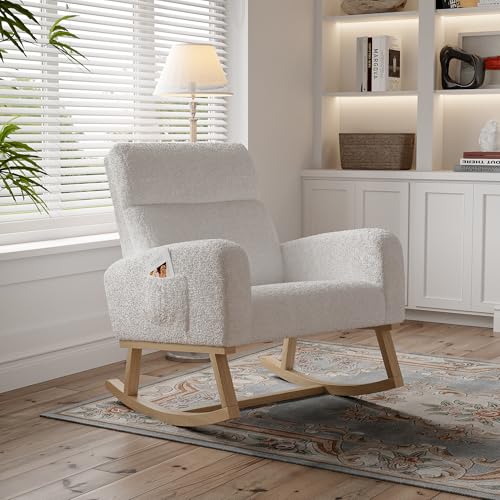 BRILVERDE Gungstol, gungstol i vardagsrum, vitt lammskinn gungstol, relaxstol med halkskydd klistermärken, gungstol för vardagsrum, balkong, lounge, vit