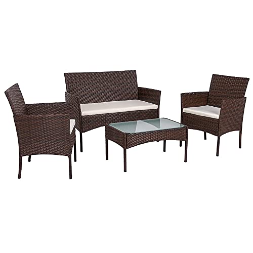 Fiqops Poly Rotting trädgårdsmöbelset, balkongmöbler, väderbeständig, med 2 soffor, singelstolar, bord och sittkuddar, sittgrupp lounge för terrass balkong trädgård, brun