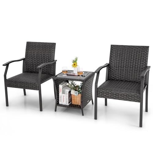 GIANTEX Rotting trädgårdsmöbler set väderbeständigt, balkongmöbler liten balkong, lounge trädgårdsmöbler set 2 stolar med bord, balkongmöbler för 2 personer, trädgårdssloungeset, trädgårdssittsgrupp