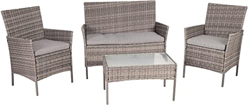 casa.pro trädgårdsmöbelset Calciano 4-TLG. Balkongmöbler, bord med bänk och 2 stolar, utomhus, sittset, stoppningskudde, lounge, möbler, rottinglook, väderbeständigt