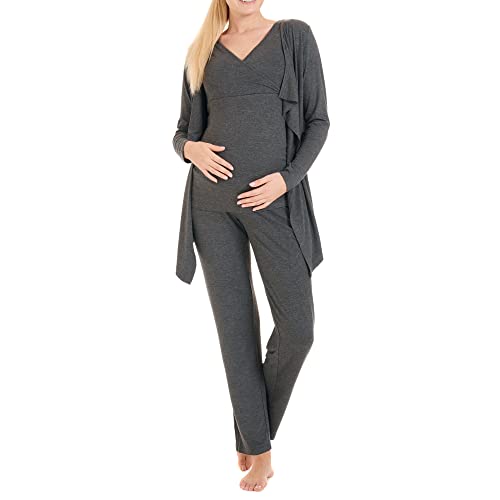 Herzmutter mammapyjamaset för kvinnor - ammande pyjamas i tre delar - graviditets wellness set - loungewear för graviditet och amning - kofta med byxor – 8100 (Mörkgrå, XXL)