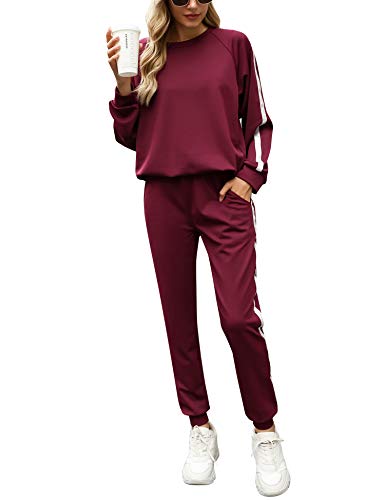 Sawmew 2 Delar Stickad Kostym Dam Långärmade Toppar Tröja Stickad Tröja Och Byxor Tvådelad Kostym Sport Kostym Fritids Kostym Street Suit Loungewear Set (Color : Brown, Size : XL)