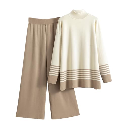 Loungewear för kvinnor, 2 delar, pullover, myskläder för kvinnor, långärmad stickad tröja topp breda ben byxor dam lounge-set två delar för kvinnor