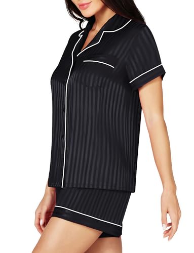 Tankaneo Loungewear för dam, kortärmad överdel och shorts, 2-delat set, matchande pyjamasset med fickor, Svart, XL