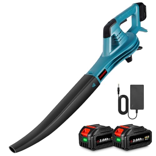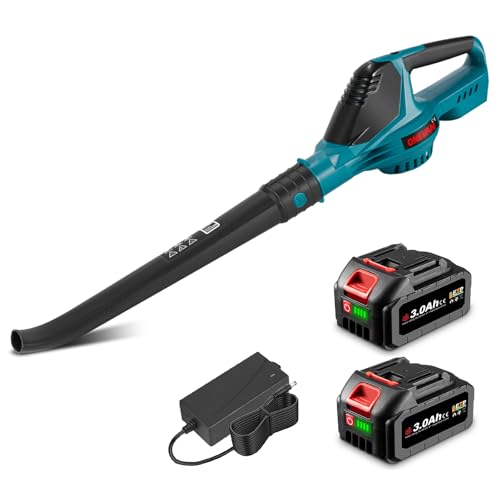 ONEVAN Lövblås Batteridriven, 350 km/h 6-växlad Elektrisk Luftblås Batteridriven Lövblås med Batteri och Laddare för Uteplatser Gräsmatta Skötsel Lövblåsning