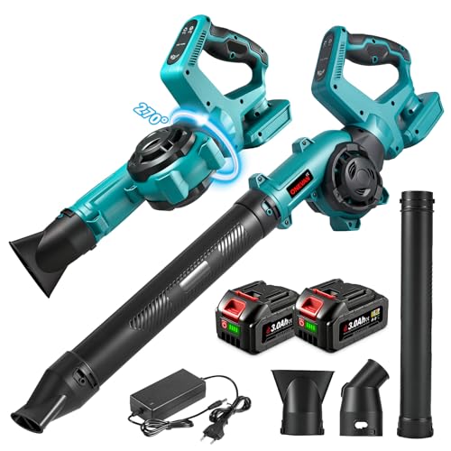 ONEVAN sladdlös lövblås med 2 3000mAh batterier, 270° roterbar, 252 km/h elektrisk lövblås, sladdlös snöslunga, batteri för att blåsa bort löv, snö och damm