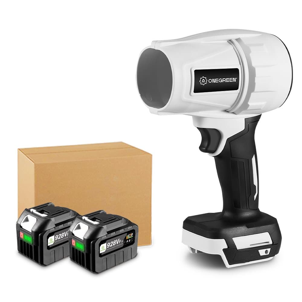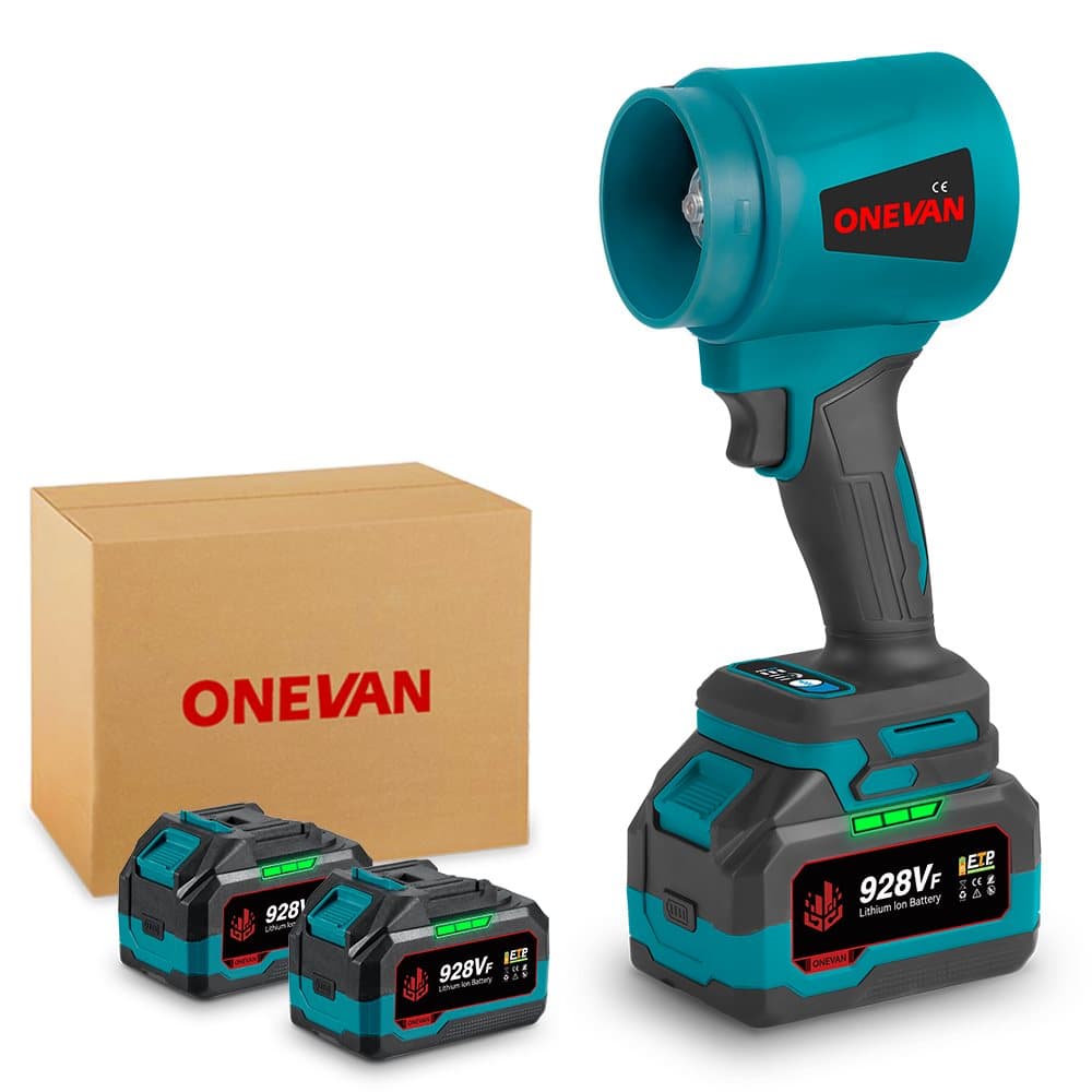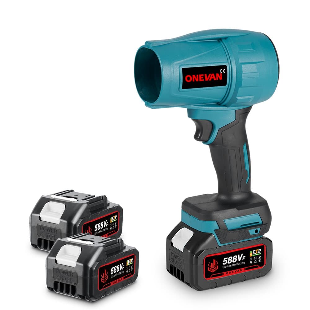 ONEVAN sladdlös lövblås med batterier och laddare, elektrisk luftblås 220 km/h, sladdlös lövblås med 5 hastigheter, borstlös, snöslunga för alla årstider, 2 3000mAh batterier