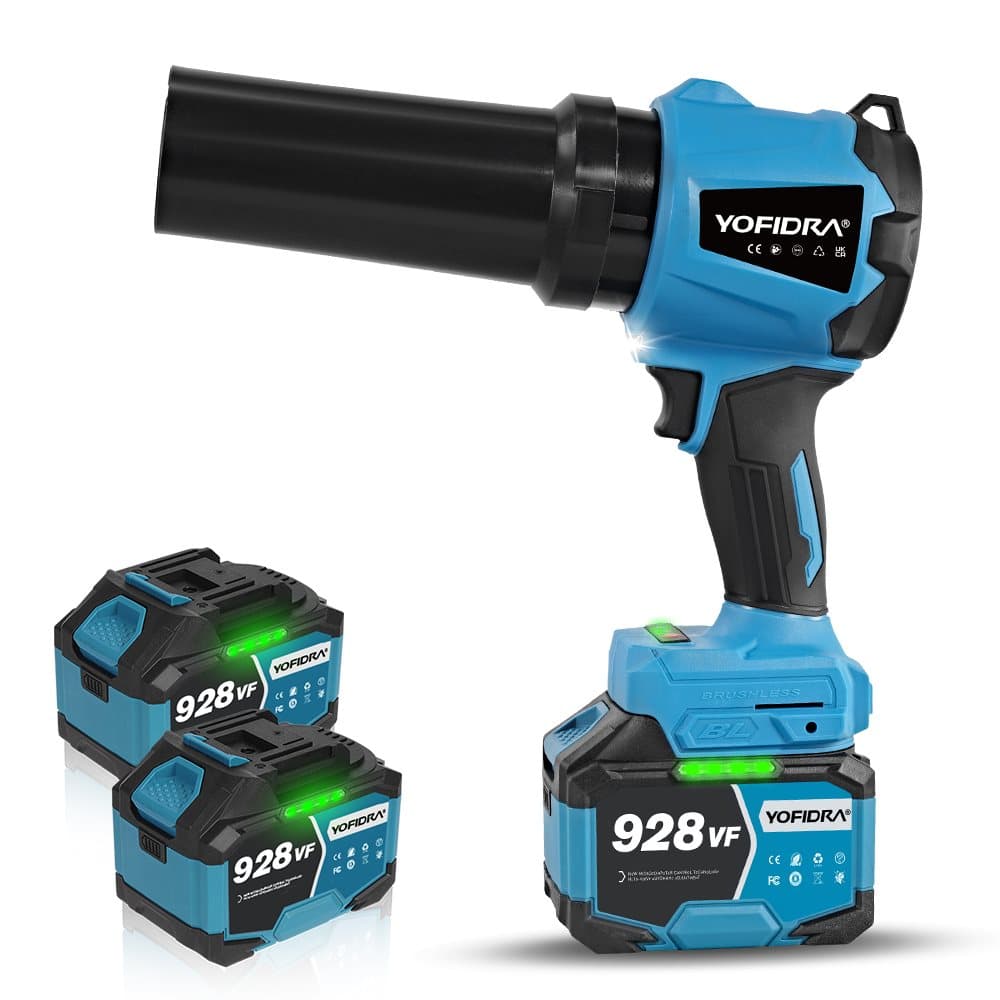 Yofidra 21v Borstlös Elektrisk Blåsare,3000w Sladdlös Lövblås,3 Hastighetsinställningar,Med 2batterier+Led-Lampor