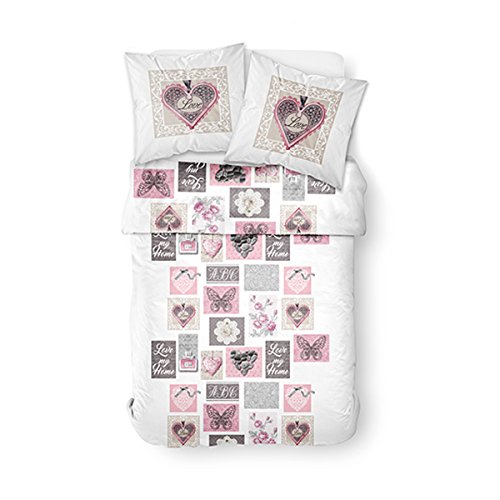 Today Love My Home sängkläder för 2 personer/påslakan med 2 örngott, polyester, vit, rosa, 220 x 240 cm