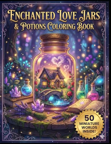 Enchanted Love Jars & Potions Coloring Book: 50 Aesthetic Coloring Pages with Miniature Worlds inside Bottles, Magical Love Spells, and Witchy Ingredients for Stress Relief & Relaxation