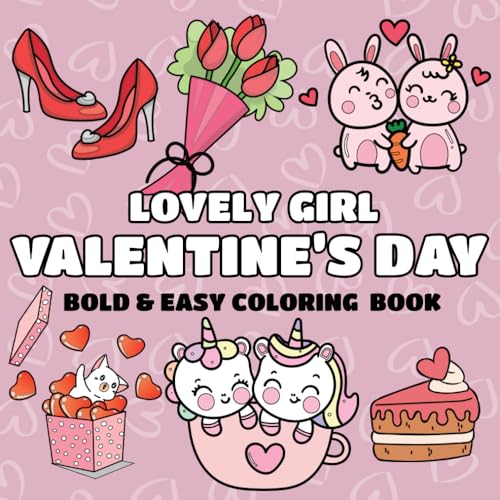 Lovely Girl Valentine's Day Bold and Easy Coloring Book: 50 Simple and Cute Designs for Girls, and Teens Romance Illustrations, Inspired Images with Thick Lines.