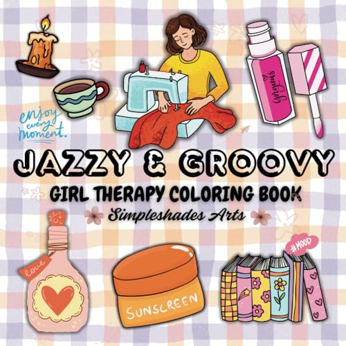 Jazzy & Groovy: Girl Therapy Coloring Book to Inspire Yourself, perfect for Adults and Kids, super cute, Bold and Easy, Simple and Big Designs for ... Featuring Lovely Things (Bold & Easy Coloring)
